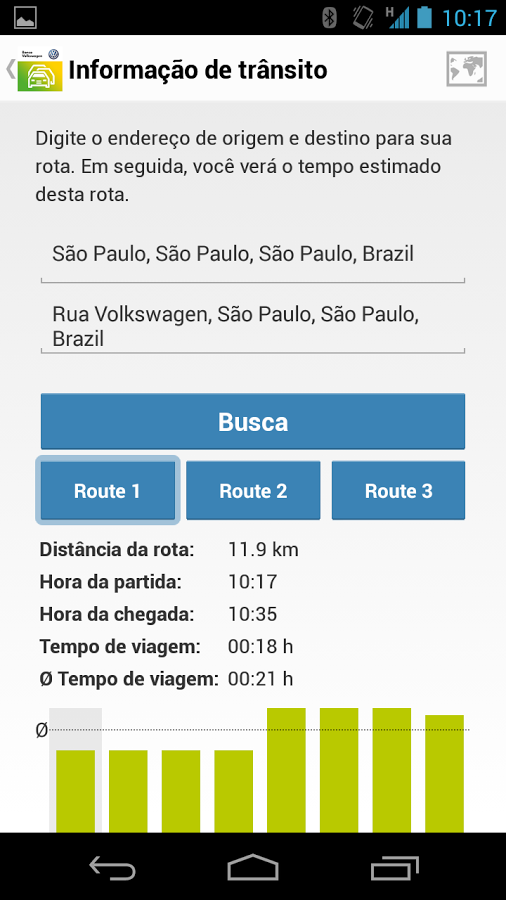 Criado pela Volkswagen Financial Services da Alemanha, com o mesmo sistema que vem acoplado aos carros do Grupo Volkswagen na Europa (INRIX), o Smart Traffic também calcula o tempo estimado do percurso e disponibiliza notícias atualizadas sobre o tráfego, permitindo identificar qual é a via de melhor circulação por meio de cores.