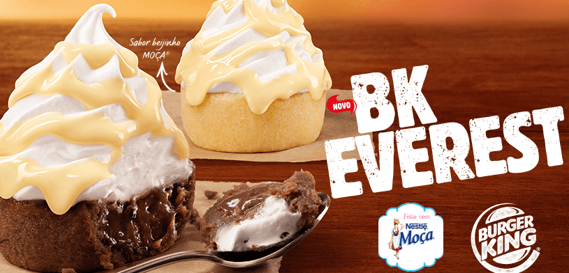 O Burger King anunciou esta semana a sobremesa BK Everest, um bolinho cremoso que vem acompanhado de sorvete e cobertura de Leite Moça.