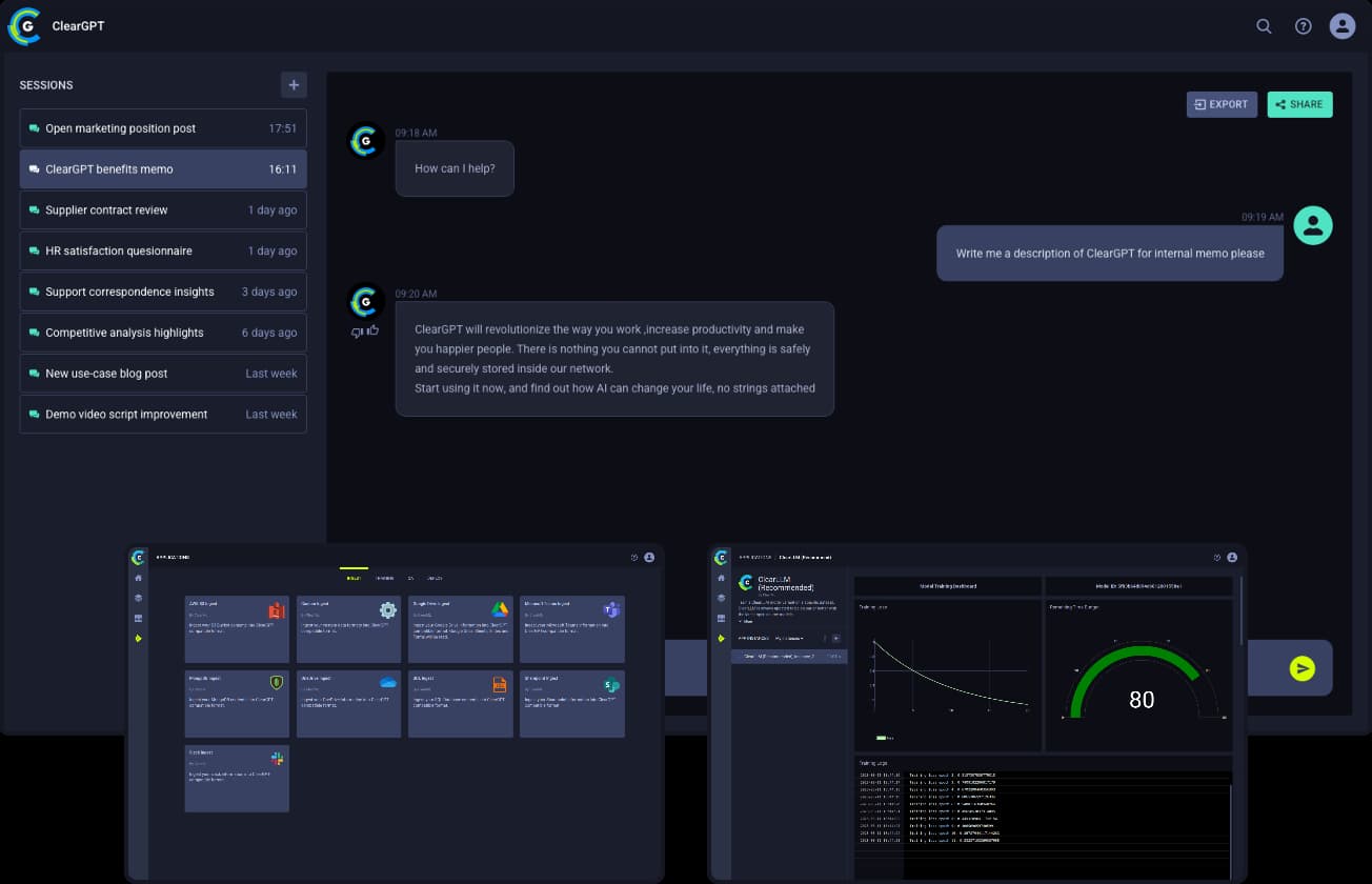 A ClearGPT surge como uma resposta a estes desafios, oferecendo um ambiente seguro dentro da rede da empresa, onde a geração de IA pode ser completamente controlada e personalizada.