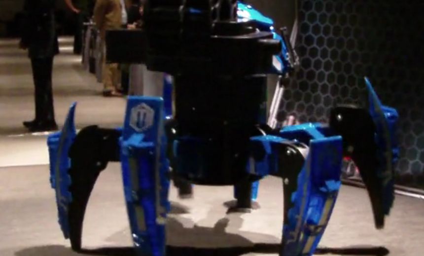 Enquanto estes pequenos robôs são legais, esta versão gigante é algo para ser visto. Wow! Stuff, exibiu uma versão de 1,7 metros de altura de seu robô Stryder na semana passada em San Francisco. O gigante Stryder fazia o chão tremer enquanto andava e disparou um míssil de espuma gigante em um manequim humano.