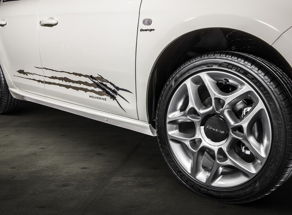 Já na parte externa, o Bravo Wolverine tem itens de personalização exclusivos: que incluem faixas laterais com a logomarca do filme Wolverine.