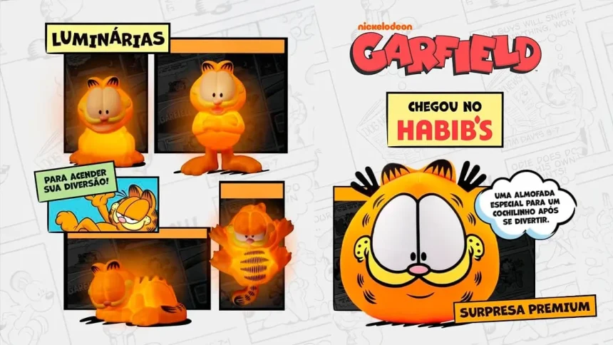 O Habib’s decidiu apostar na nostalgia e apresentou uma nova coleção de luminárias inspiradas no Garfield, o famoso gato preguiçoso e rabugento que marcou gerações de fãs. A iniciativa segue a tendência recente de redes de fast food criarem itens colecionáveis temáticos para atrair consumidores e fãs de personagens clássicos.