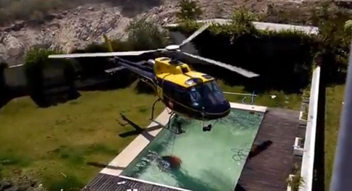 Um registro publicado no YouTube mostra um piloto de helicóptero, em Portugal, que conseguiu levar a água de uma piscina próxima para ajudar a combater um incêndio florestal fora de controle. O piloto desconhecido fez um trabalho de manobra incrível ao pegar, com um balde pendurado, a água da piscina enquanto evitando as árvores e obstáculos ao redor.