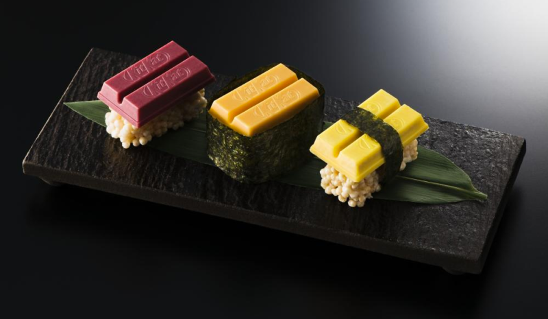 Sushi Kit Kat virá em três sabores: Maguro (atum), Tamago (ovo), e Uni (ouriço do mar). O sabor, entretanto, será diferente do tradicional e funciona apenas como uma inspiração.