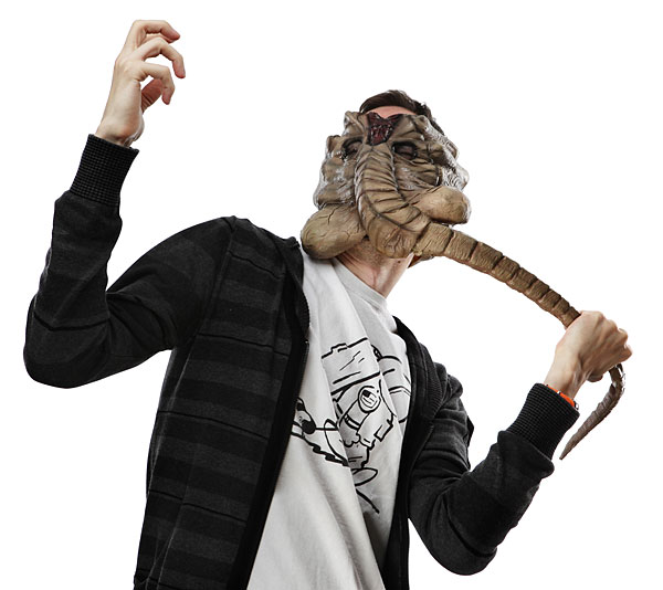 A venda na Think Geek, esta máscara é uma réplica perfeira da criatura Facehugger (Abraçador), a segunda forma do alien após sair do ovo.