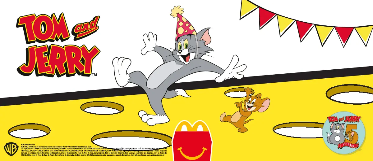 Quem nunca se divertiu com as trapalhadas de Tom & Jerry? Agora, o McLanche Feliz traz essa dupla lendária para alegrar a criançada (e os adultos que cresceram com eles)!