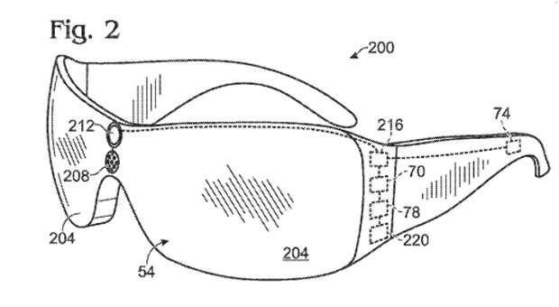 A patente também menciona sensores para o reconhecimento facial, eye-tracking, profundidade de campo e tecnologias específicas para exibir informações aos usuários.