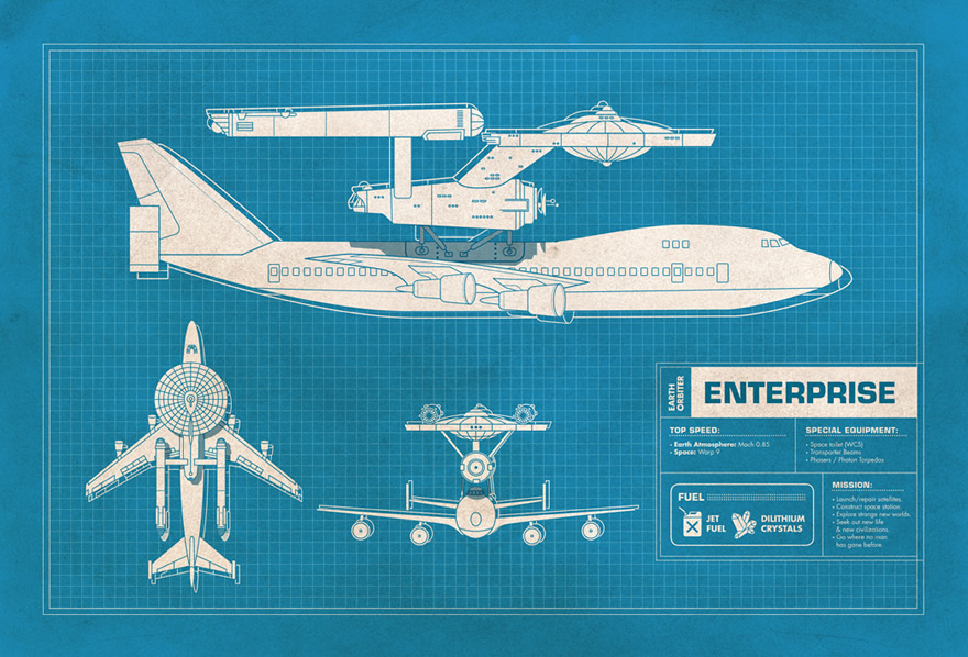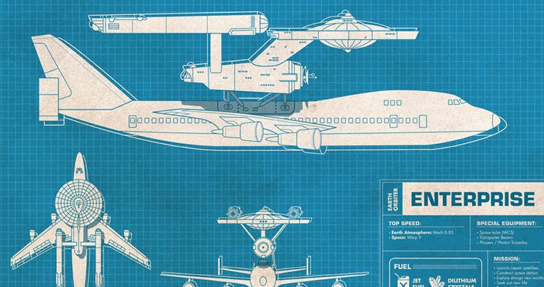 Plantas fictícias da NASA mostram veículos combinados com símbolos da cultura pop