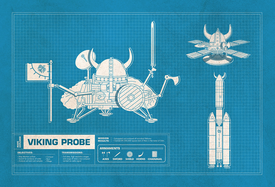 Doug Pederson, um ilustrador americando criou uma série de projetos divertidos de veículos da NASA combinados com os veículos da cultura pop e outros símbolos.