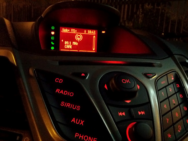 Não tem como não olhar para a parte central do painel, onde você tem um grande visor para acompanhar uma série de recursos, incluindo o rádio, telefone, CD, entrada auxiliar e muito mais. Não lembro quem perguntou mas este carro tem bluetooth e um sistema Sync da Microsoft.