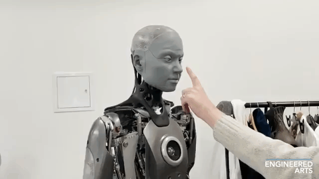 Ameca, o robô humanóide da Engineered Arts que tem uma ampla gama de expressões faciais realistas e interações físicas responsivas e está ainda mais avançado.